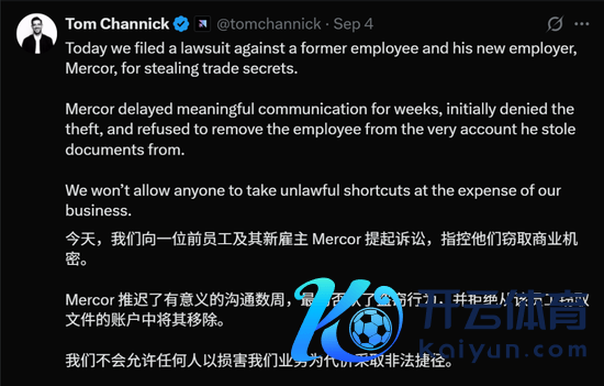 9月4日,Scale AI传播副总裁Tom Channick在X平台刚烈表态,“Mercor数周以来一直拖延骨子性交流,开首否定存在窃取活动,况且拒却调离该职工。咱们不允许任何东说念主通过犯警捷径来废弃咱们的业务。”
