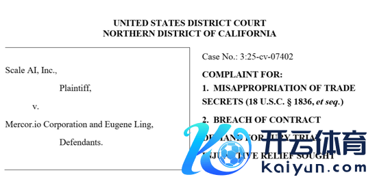 当地时刻9月3日开yun体育网,数据标注巨头Scale AI一纸诉状,将前客户关连经管雅致东说念主Eugene Ling偏激新东家——估值已达20亿好意思元的AI初创公司Mercor双双告上法庭。Scale AI指控,Ling在下野时不仅“顺走”了上百份隐秘文献,更试图“策反”其最蹙迫的客户。